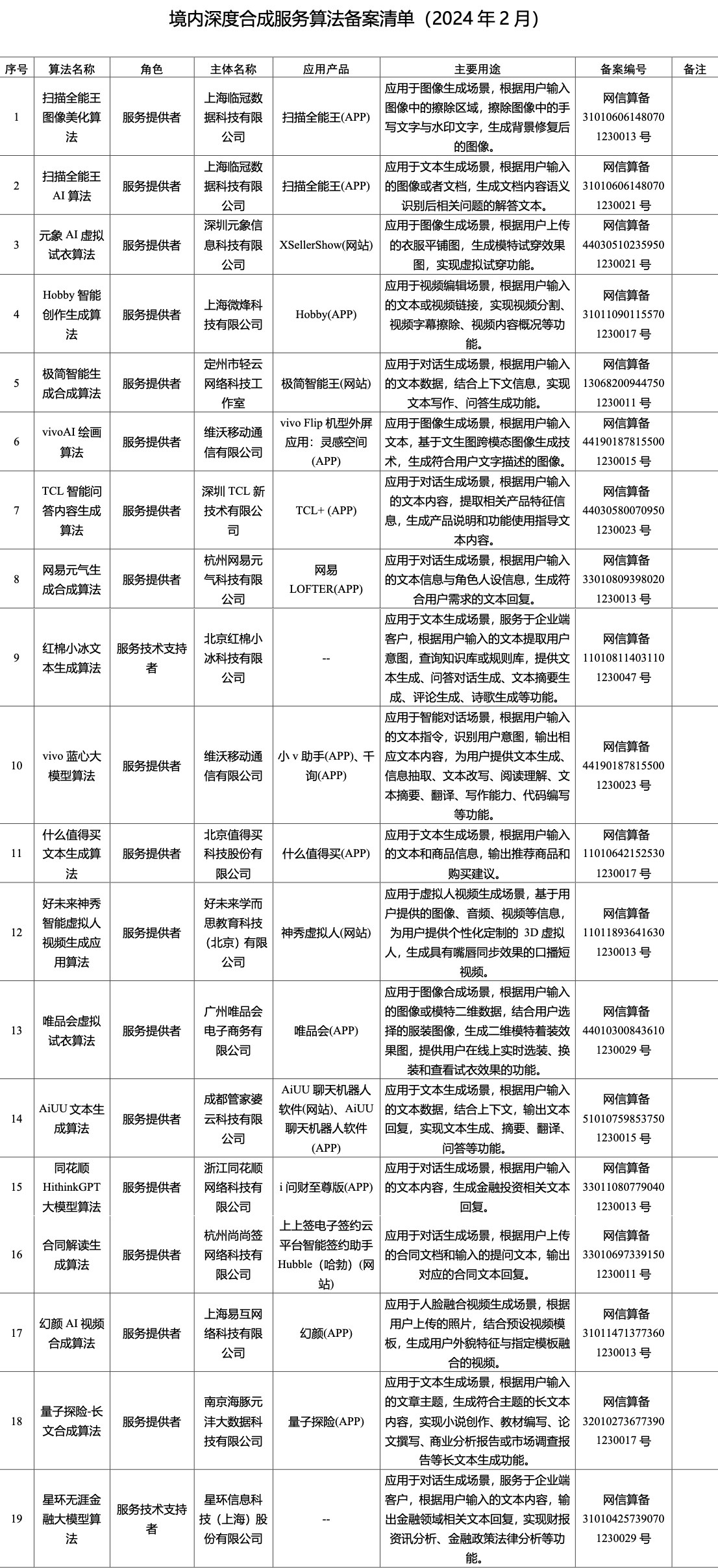 详细备案清单地址:http://www.cac.gov.cn/2024-02/18/c_1709925427424332.htm