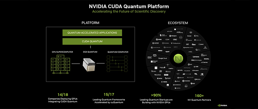 NVIDIA CUDA Quantum是一个拥有丰富模拟工具并能对混合CPU、GPU、QPU系统进行编程的开源混合量子计算平台,具有混合量子-高性能计算(HPC)系统的能力。该中心的研究人员将使用CUDA Quantum和专为加速量子计算工作流程而优化的软件开发工具套件NVIDIA cuQuantum。