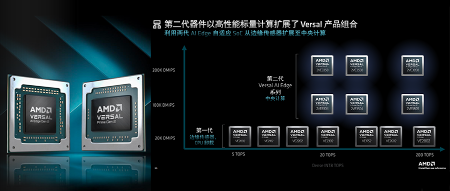 芯东西4月9日报道,今日,AMD推出第二代Versal自适应SoC产品组合,包括面向AI驱动型嵌入式系统的第二代Versal AI Edge系列、面向经典嵌入式系统的Versal Prime系列。