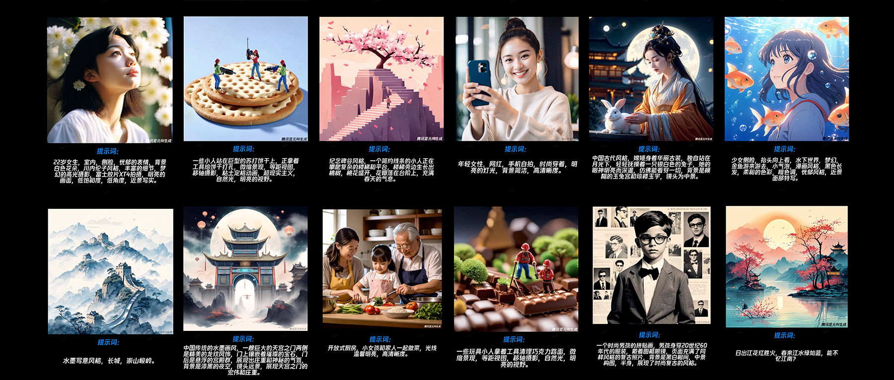比如输入一段涉及大量细节描述的文字,混元文生图能够精细理解文字要求,生成符合各种细节的图像。