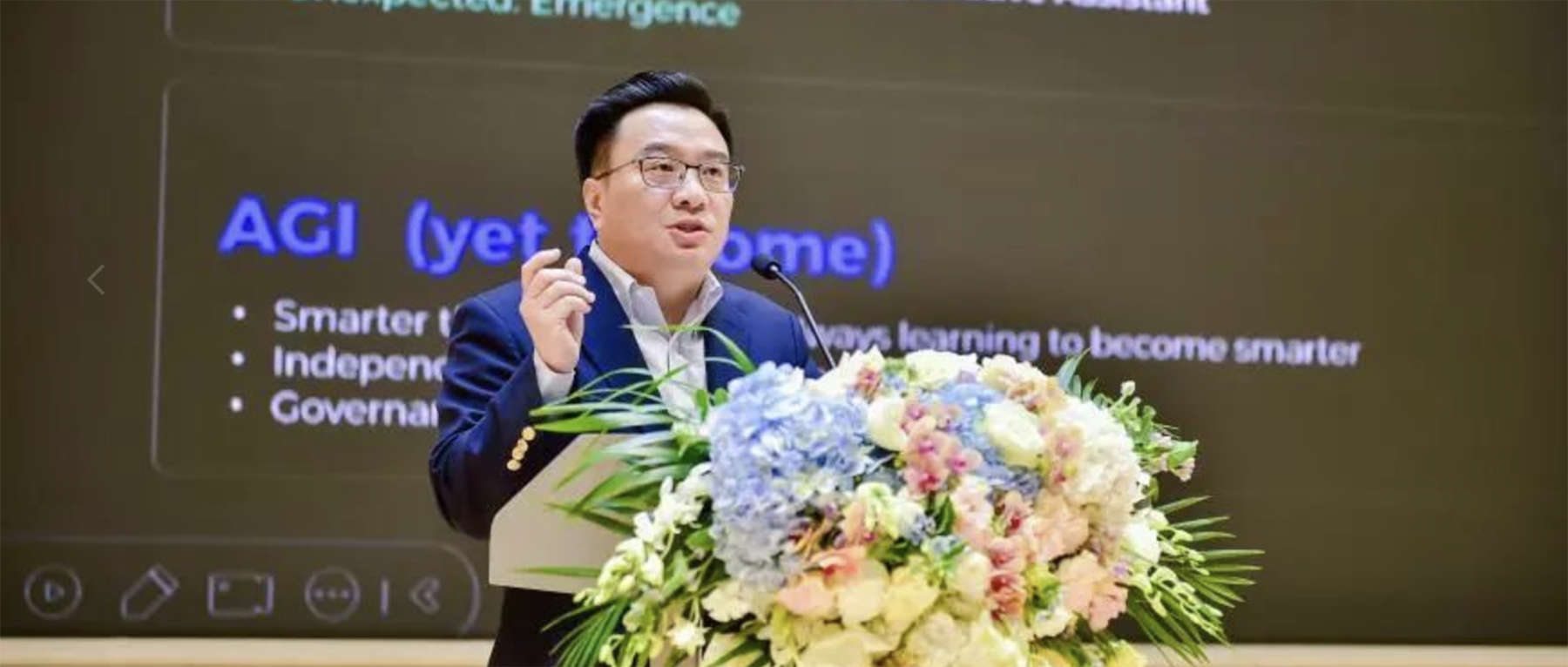 ▲清华大学电子工程系长聘教授、清华大学惠妍讲席教授、衔远科技创始人周伯文(图源:启明创投)