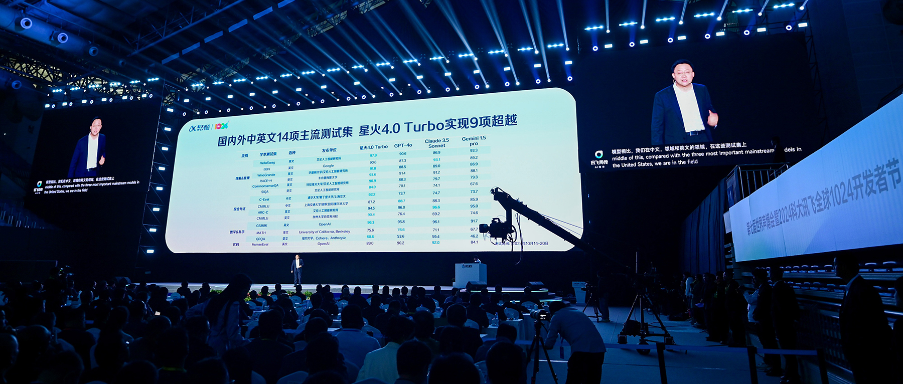 智东西10月24日报道,今天,2024科大讯飞全球1024开发者节上,科大讯飞星火大模型再次重磅升级,星火4.0 Turbo多项能力全面超过GPT-4 Turbo。