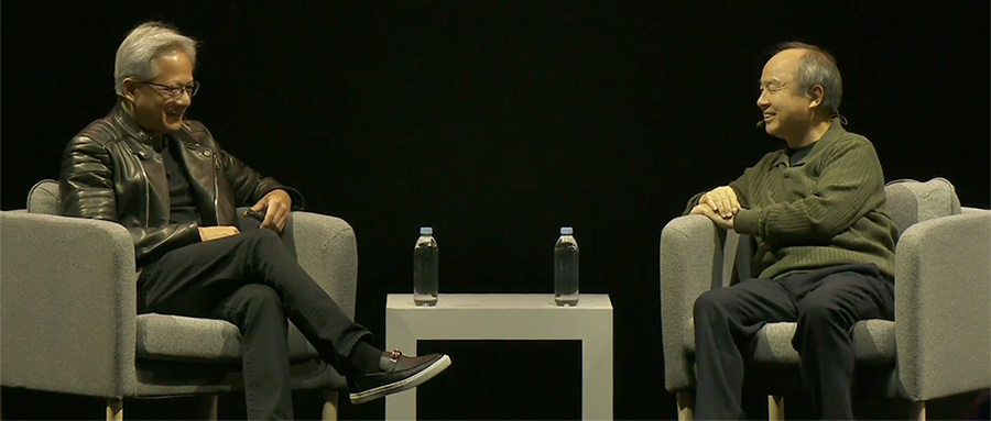 穿着标志性黑色皮衣的黄仁勋,先是发表了1小时的特别演讲,随后与软银集团CEO孙正义进行现场对谈。黄仁勋爆料说:“在座的许多人可能不知道,孙正义曾是英伟达的最大股东。”紧接着两人表演了一出抱头痛哭。