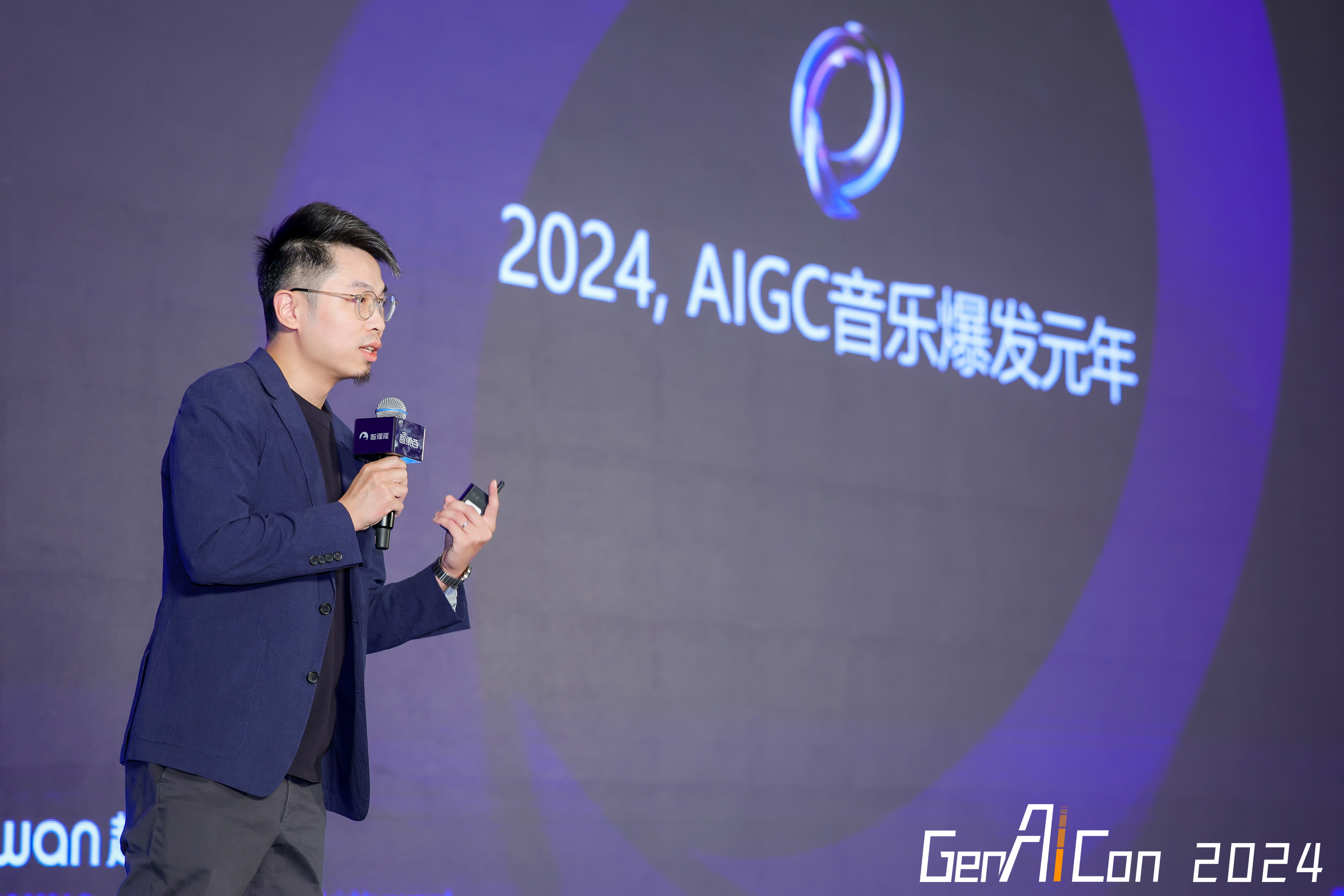 12月5日-6日,由智东西与智猩猩联合主办的2024中国生成式AI大会(上海站)在上海圆满举行。在大会首日的主会场上,趣丸科技副总裁贾朔以《探索音乐创作的技术平权——AI音乐的创新实践》为题发表了演讲。