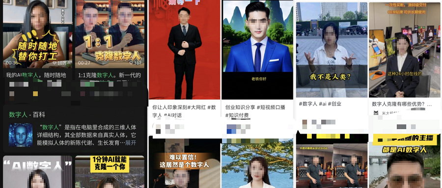 ▲各大内容平台上的AI数字人