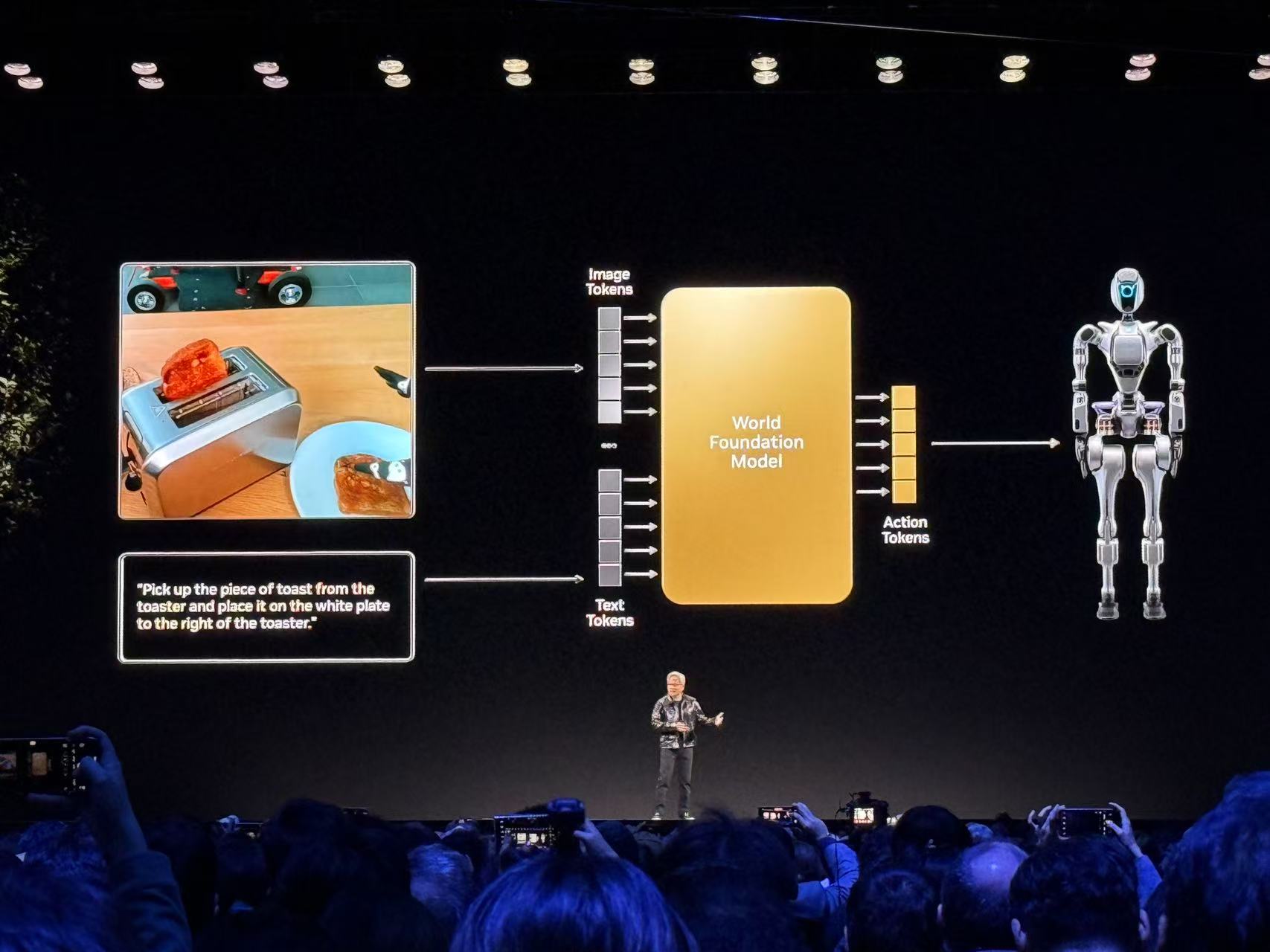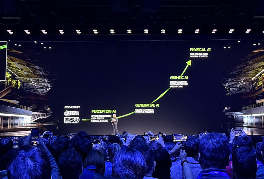 他判断在感知AI、生成式AI后,AI浪潮的下一站是代理型AI(Agentic AI),再之后是物理AI(Physical AI)。黄仁勋相信,机器人的ChatGPT时刻即将到来,而世界基础模型对于推进机器人和自动驾驶汽车的开发至关重要。