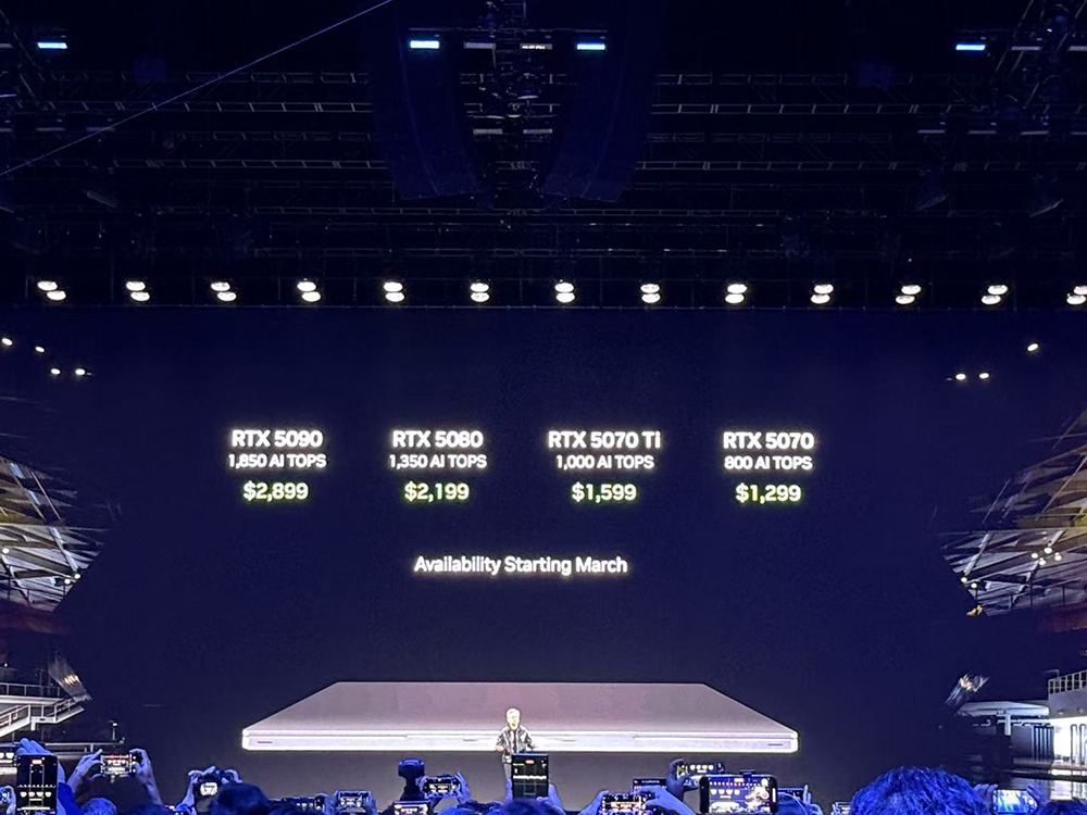 演讲期间宣布的RTX 5090售价1999美元,RTX 5080售价999美元,RTX 5070Ti售价749美元,RTX 5070只卖549美元。