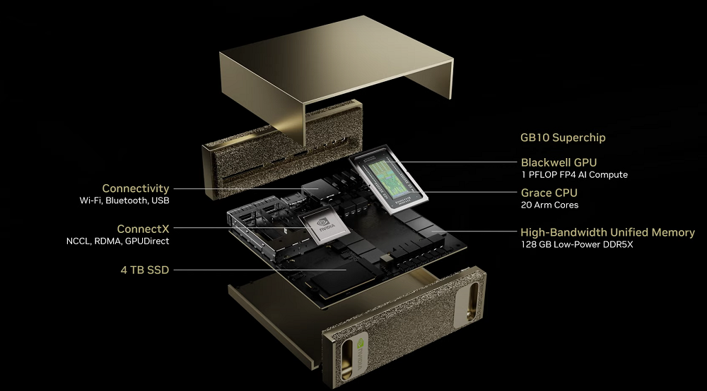 每台Project DIGITS拥有128GB的高带宽统一内存和高达4TB的NVMe存储。