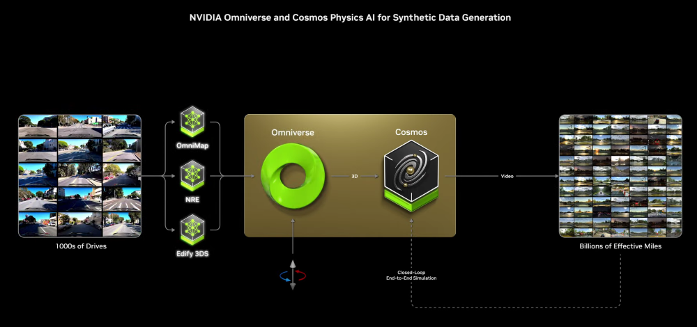 英伟达宣布全球最大的汽车制造商丰田将在NVIDIA DRIVE AGX Orin上构建下一代车型,称其端到端自动驾驶平台DRIVE Hyperion已经被奔驰、捷豹路虎、沃尔沃等车企采用,并强调英伟达通过Omniverse和Cosmos平台将能够大幅增加自动驾驶汽车的数据集规模。
