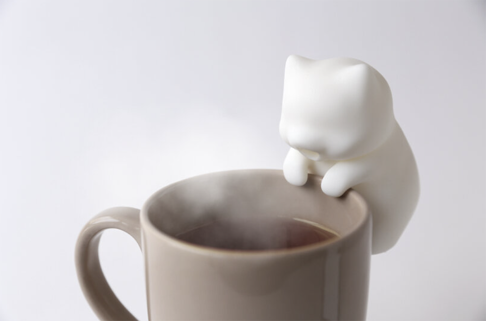 日本公司Yukai Engineering展示了一个超迷你的小猫咖啡伴侣Nékojita FuFu,把它挂在杯壁上,它体内的小风扇就会旋转起来,从微微张开的猫猫嘴里吹出,帮你把滚烫的热水吹凉。