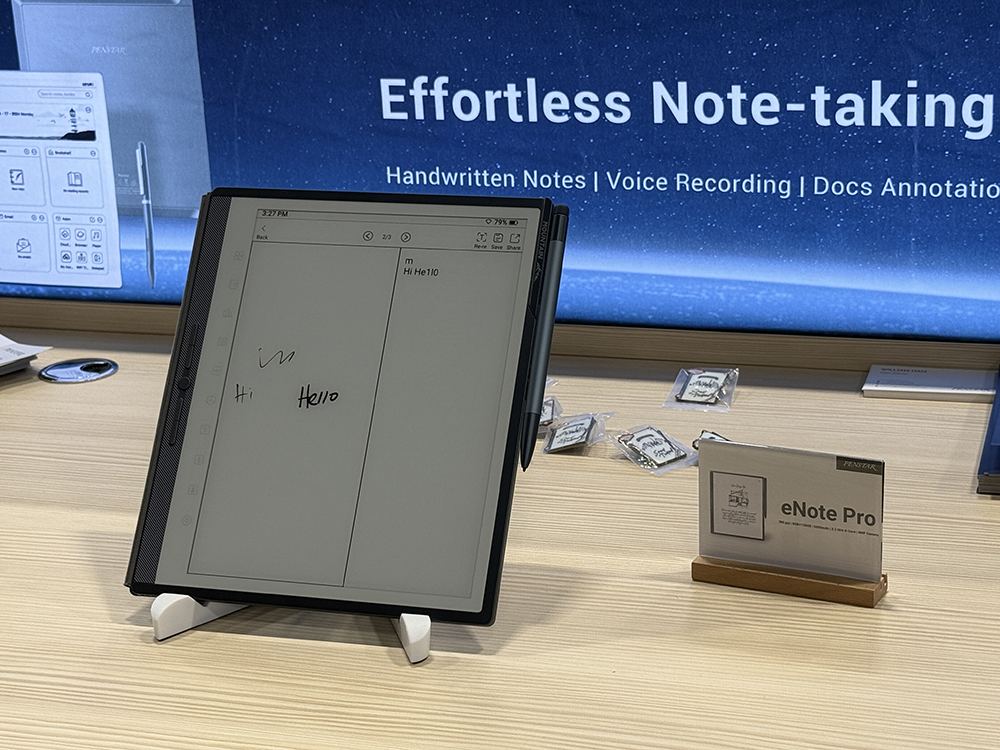 汉王Penstar海外电纸本品牌展示了号称“全球最像纸的平板电脑”,支持手写和录音。