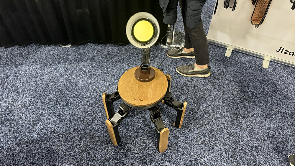 还有日本公司Jizai打造的五脚机器人Mi-Mo,头部是一个台灯,看起来像皮克斯木桌成精了。它能在屋中四处走动,通过传感器获取视觉或音频提升。