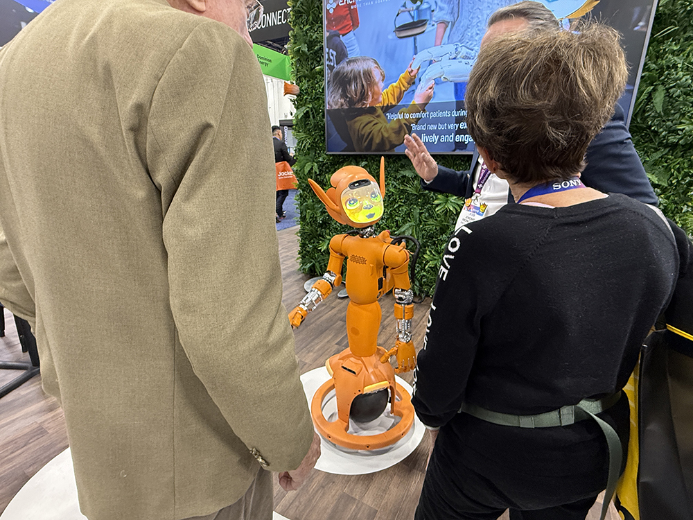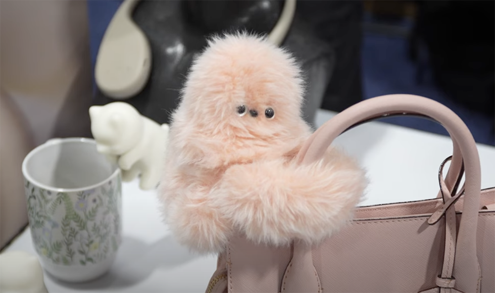 比较特别的是日本公司Yukai Engineering展示的吉祥物树懒宝宝机器人Mirumi,把它挂在包上或者手腕上,它会自发转头看附近的人,俨然一个有趣的时尚单品。