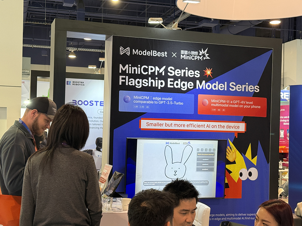 国内大模型创企面壁智能重点展示了其端侧模型兼顾性能和尺寸的特点。