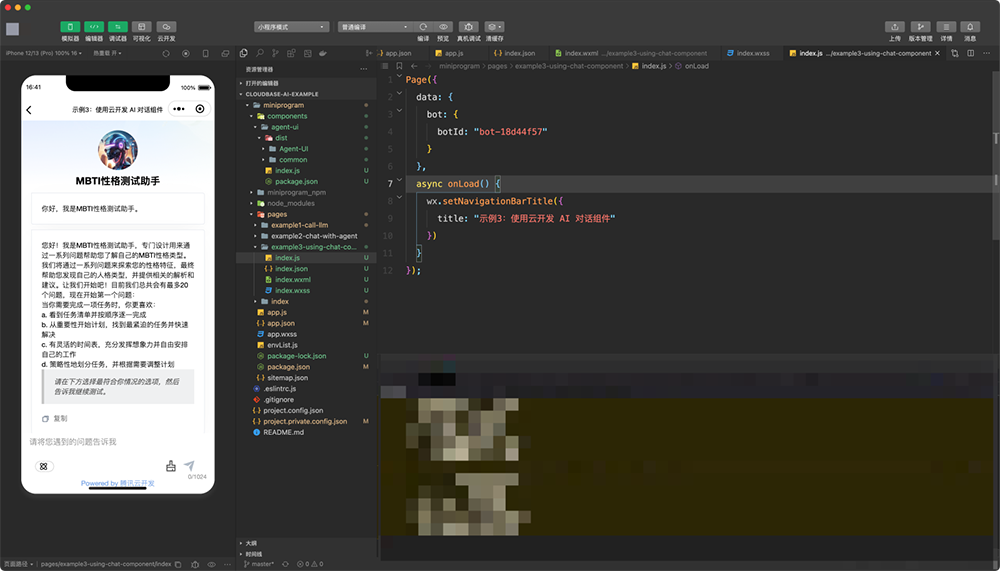以上的三种小程序接入AI的方式,云开发将完整的代码示例放在了代码仓库中: