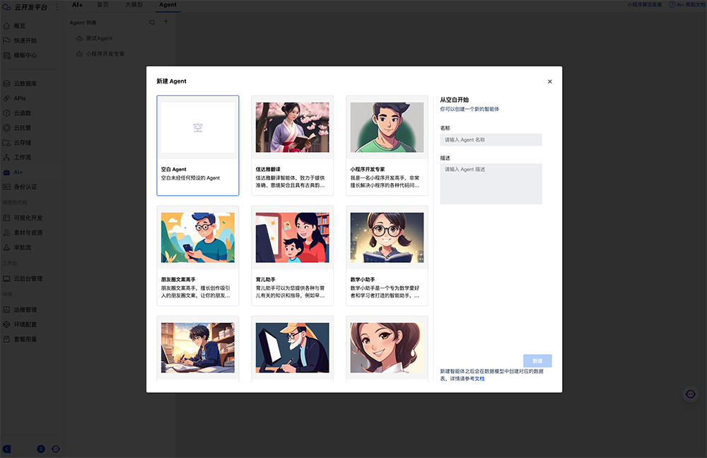 进入云开发平台,创建一个新的Agent。
