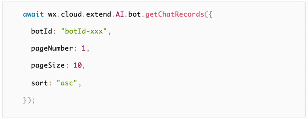 传入 botId、分页信息和排序方式,获取指定Agent的聊天记录。