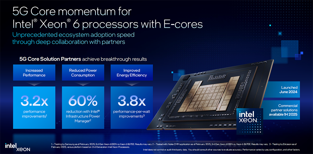5G和AI正在改变网络连接的方式,传统的网络优化策略已经无法满足需求。为了充分释放下一代网络连接技术的潜力,电信运营商正在积极采用网络切片、AI驱动的无线控制器和云原生架构等技术。至强6能效核处理器已经用在很多的5G网络中,在新的应用方面也取得了突破。
