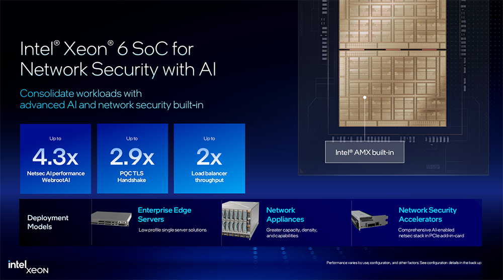用在负载均衡器上,至强6 SoC还可以实现2倍的吞吐量增长,适用于不同种类的网络安全设备上。