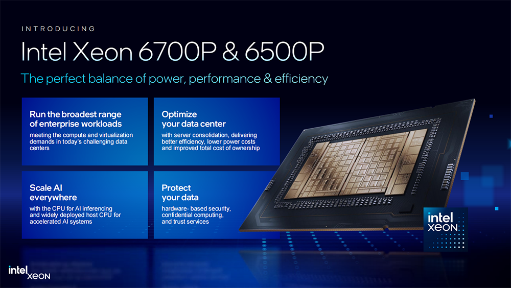 芯东西2月25日报道,今日,英特尔推出全新至强6700/6500性能核处理器,AI处理性能提升高达2倍。这是继去年9月推出最高端的至强6900性能核处理器后,英特尔进一步扩展至强6产品线。