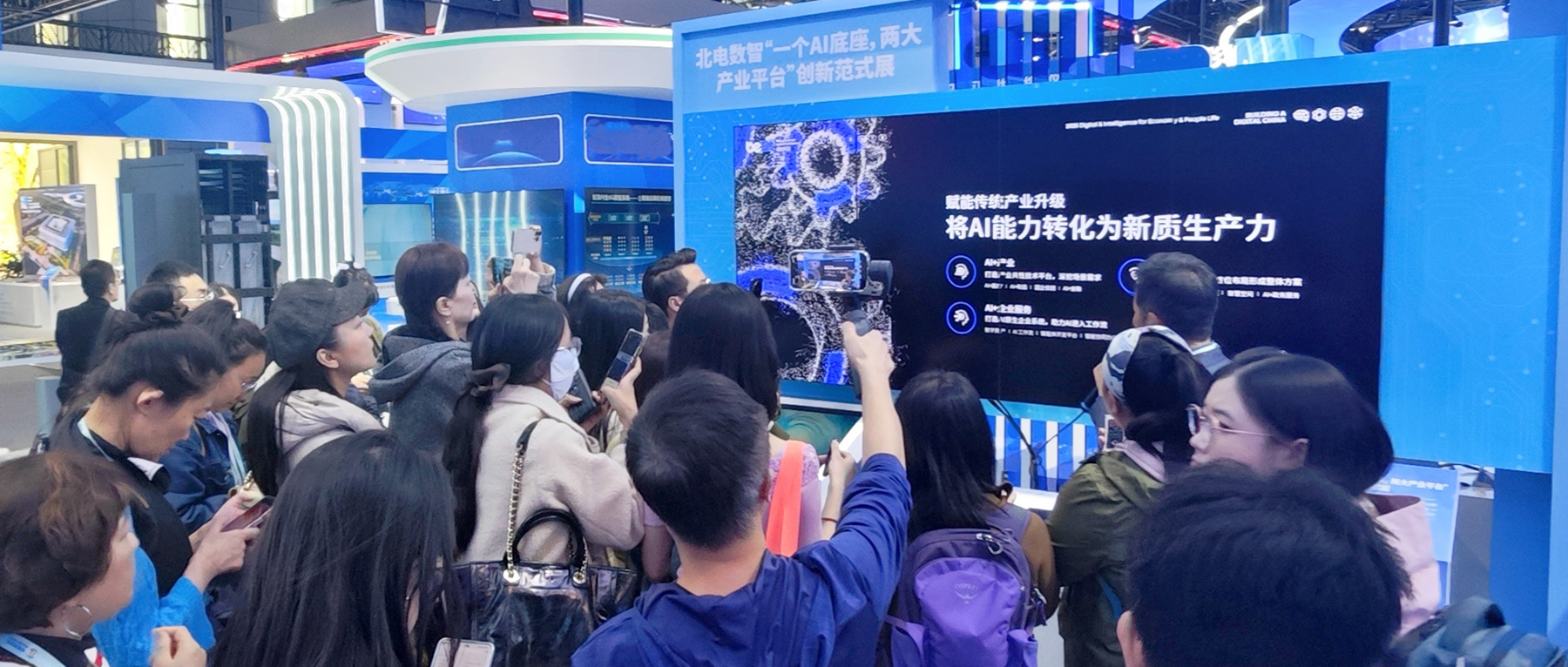 北京电控旗下北京电子数智科技有限责任公司(以下简称“北电数智”)的“一个AI底座+两大产业平台”的创新范式在展会上热度颇高。