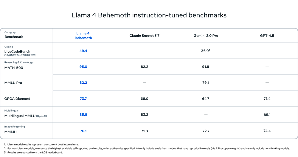 三、Llama 4 Behemoth预览:近2万亿总参数,改造底层基础设施