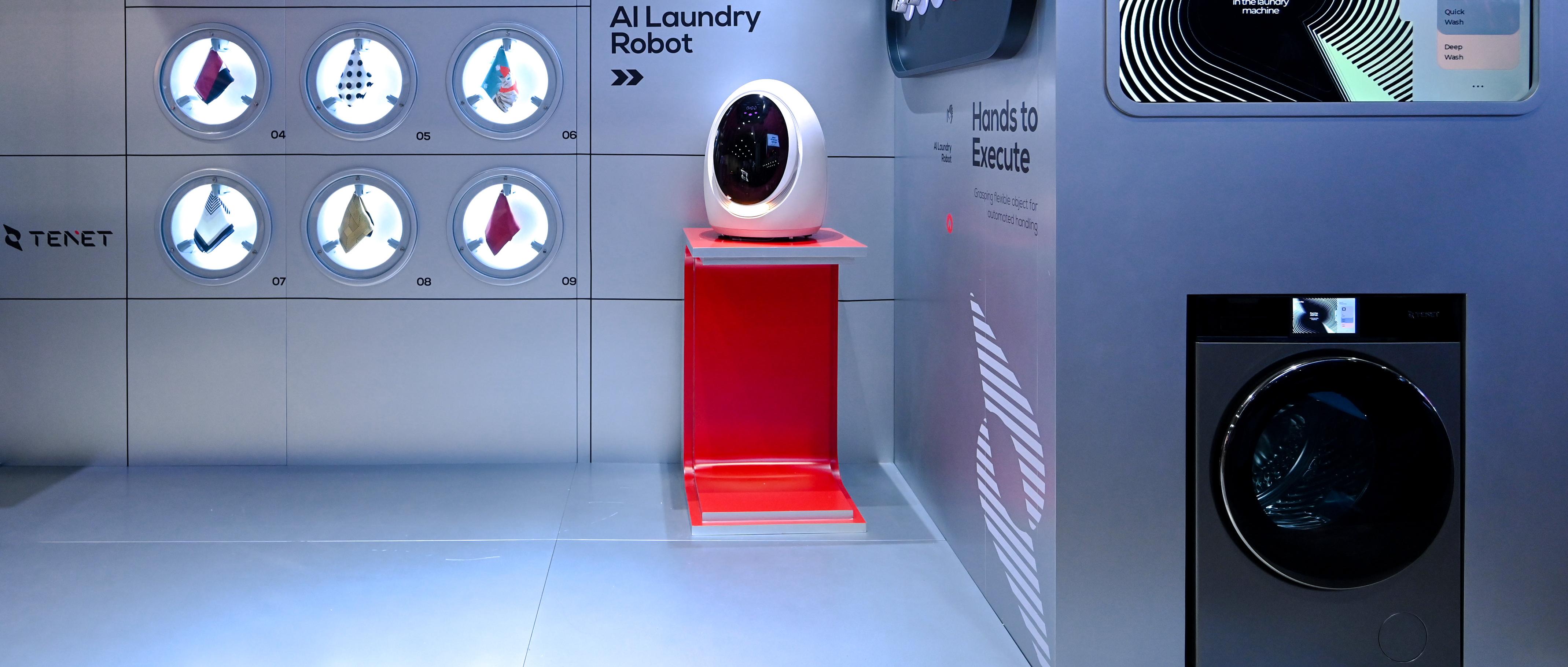 ▲一目科技在CES2025所展出的具有双机械臂的迷你洗衣机