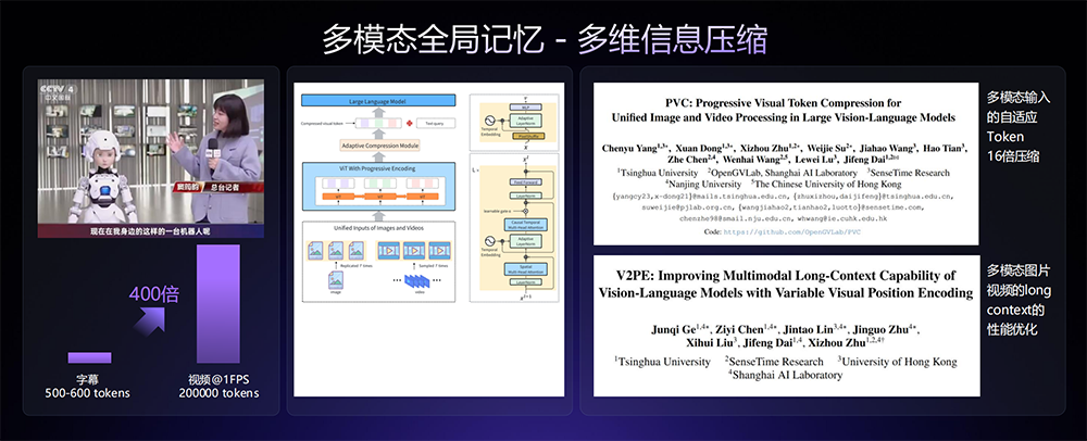 (3)多模态全局记忆:可将视觉信息、听觉、语言、与时间轴逻辑进行对齐,形成多模态统一时序表征。在此基础上通过内容敏感的细粒度级联信息压缩,实现400倍的长视频压缩。