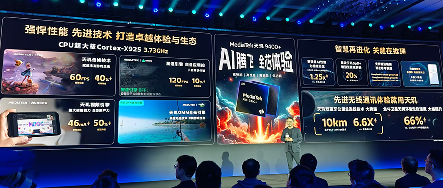 联发科技副总经理徐敬全登台正式发布了天玑9400+这颗旗舰手机芯片。