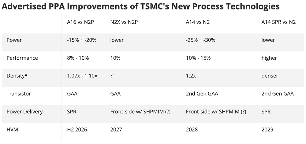 此外,该公司透露其在2024年第四季度开始生产基于性能增强型N3P(第三代3nm级)工艺技术的芯片。N3X芯片预计将于今年下半年量产。与N3P相比,N3X有望在相同功率下将最大性能提高5%,或在相同频率下将功耗降低 7%,并支持高达1.2V的电压。