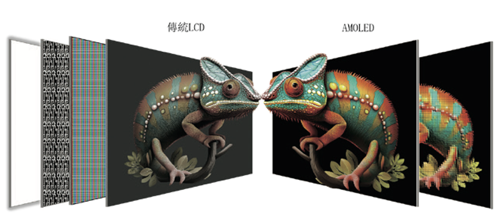 AMOLED即主动矩阵有机发光二极管,是一种先进的显示技术。与液晶显示LCD技术相比,AMOLED提供了更高的亮度和对比度、更好的色彩饱和度、多样化的面板尺寸规格、超薄外形、广视角、快速响应、低功耗以及可用于实现柔性显示等。