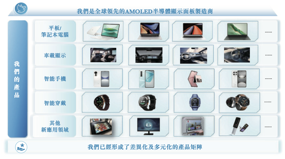 和辉光电打造了覆盖平板/笔记本电脑、智能手机、智能穿戴、车载显示的多元化产品矩阵,并积极拓展航空显示等新兴应用领域。
