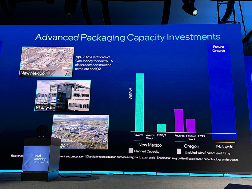 后端也有类似的情况。英特尔在先进封装技术和产能方面投入了大量资金,在美国新墨西哥州、俄勒冈州以及亚洲的工厂都提供先进封装。