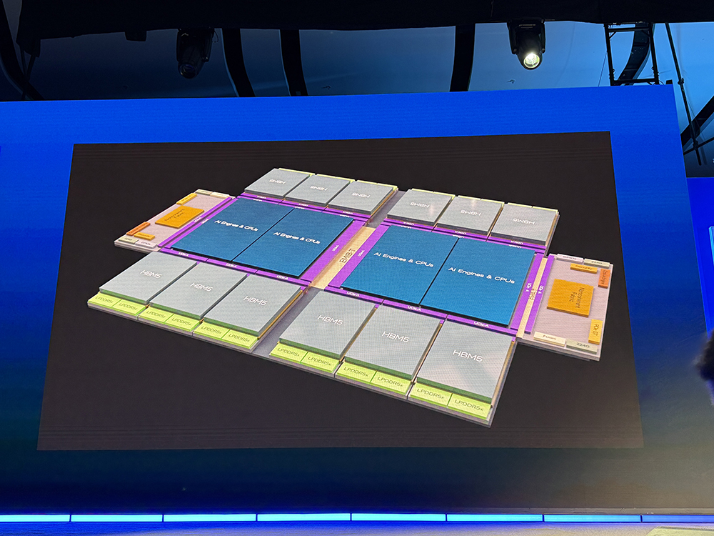 英特尔公司高级副总裁兼代工服务总经理Kevin O’Buckley谈道,英特尔致力于成为一家“AI服务公司”。他用幻灯片展示了一个非常有意思的AI计算reticle die——采用多款英特尔先进制程、Foveros Direct 3D封装,以及各种业界先进内存、先进封装技术。