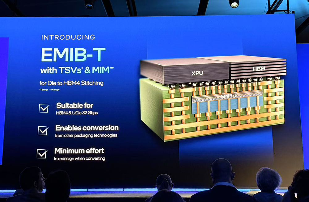 其中,EMIB-M在桥接器中采用MIM电容器;EMIB-T进一步在桥接器上添加了TSV,可用于Die到HBM4拼接,适用于HBM4和UCIe 32 Gbps,可轻松实现来自其他封装设计的IP集成,快速扩展到有更大芯片面积和更多HBM的复杂解决方案。