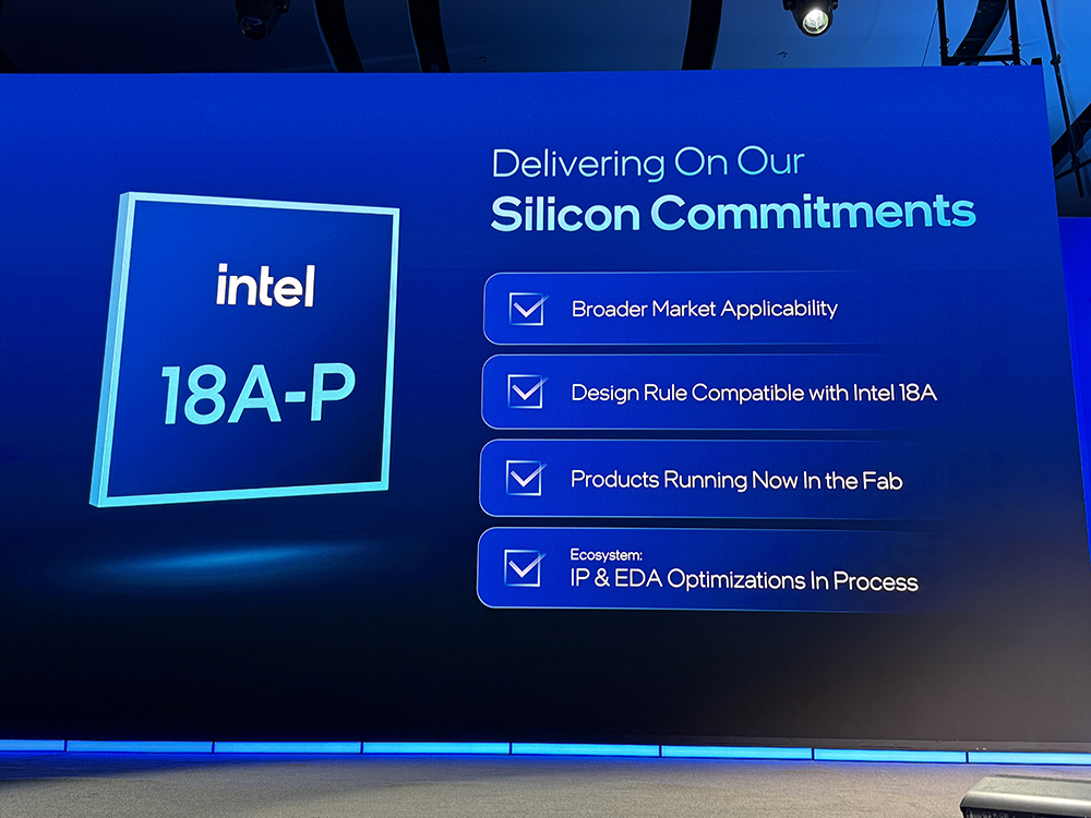 与Intel 18A相比,其演进版本Intel 18A-P的每瓦性能提升约8%,芯片密度翻倍提升。Intel 18A-P的早期试验晶圆已开始生产。因其与Intel 18A的设计规则兼容,IP和EDA合作伙伴已开始为Intel 18A-P提供相应支持。