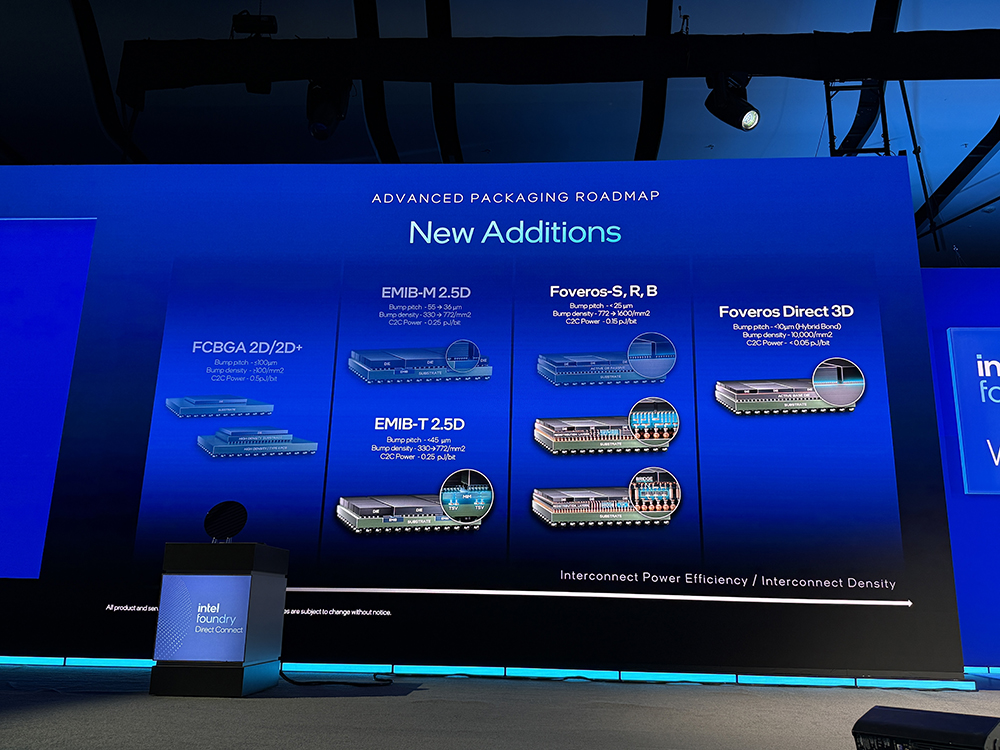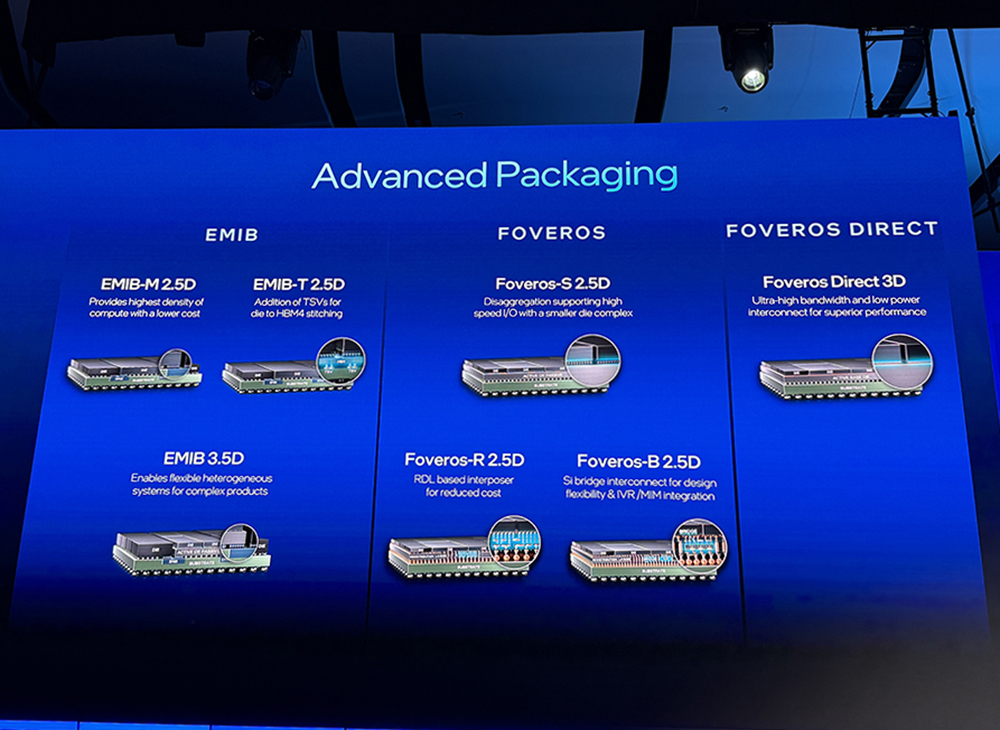 针对先进封装需求,英特尔代工提供系统级集成服务,通过Foveros Direct(3D堆叠)和EMIB(2.5D桥接)技术实现连接。