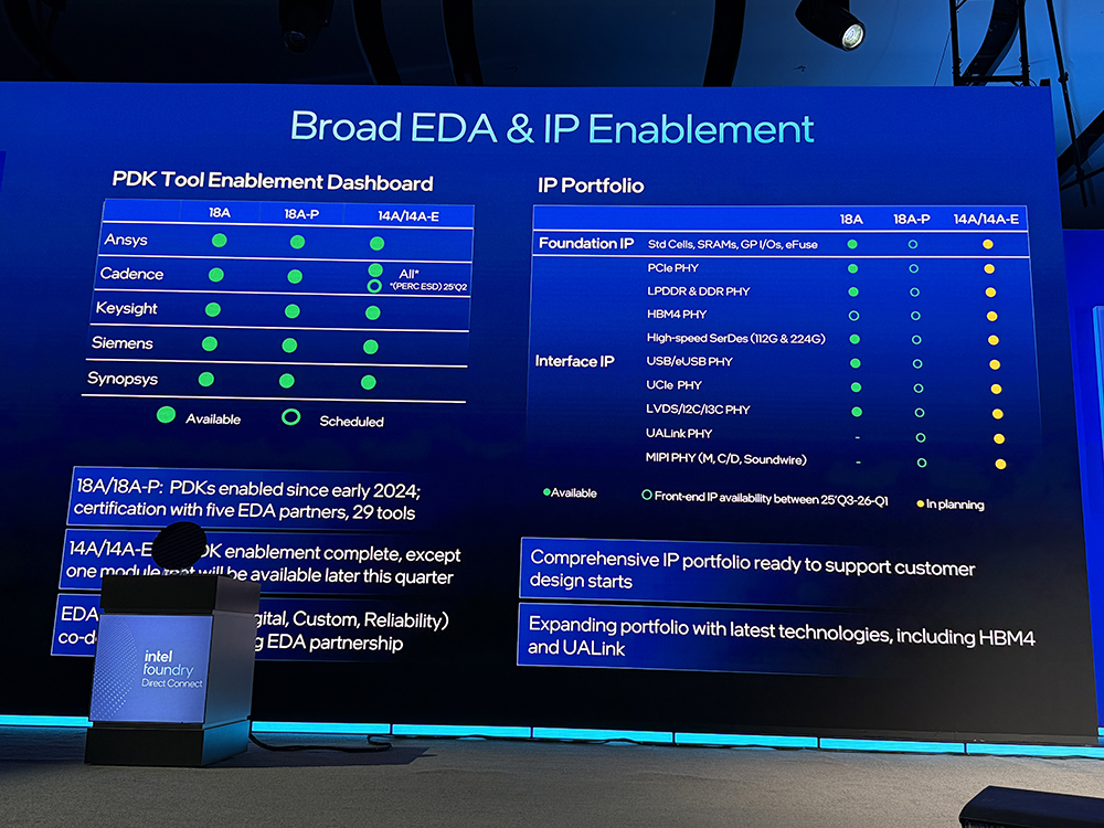 在先进的Intel 18A、18A-P、14A、14A-E节点,英特尔生态伙伴们提供了广泛的EDA&IP组合。