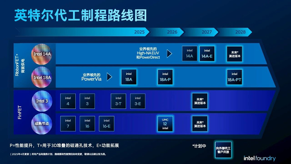 Intel 18A已进入风险试产阶段,预计今年量产。英特尔将在2026年上半年推出更多的Intel 18A演进版本。