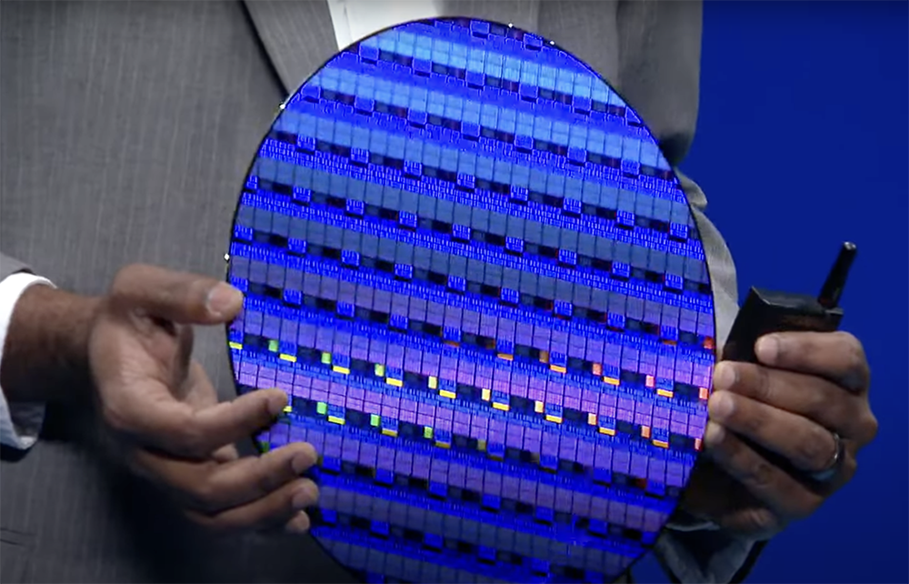 英特尔公司执行副总裁,全球首席技术与运营官、英特尔代工技术与制造事业部总经理Naga Chandrasekaran还在台上展示了美国俄勒冈州工厂生产的Intel 14A晶圆。