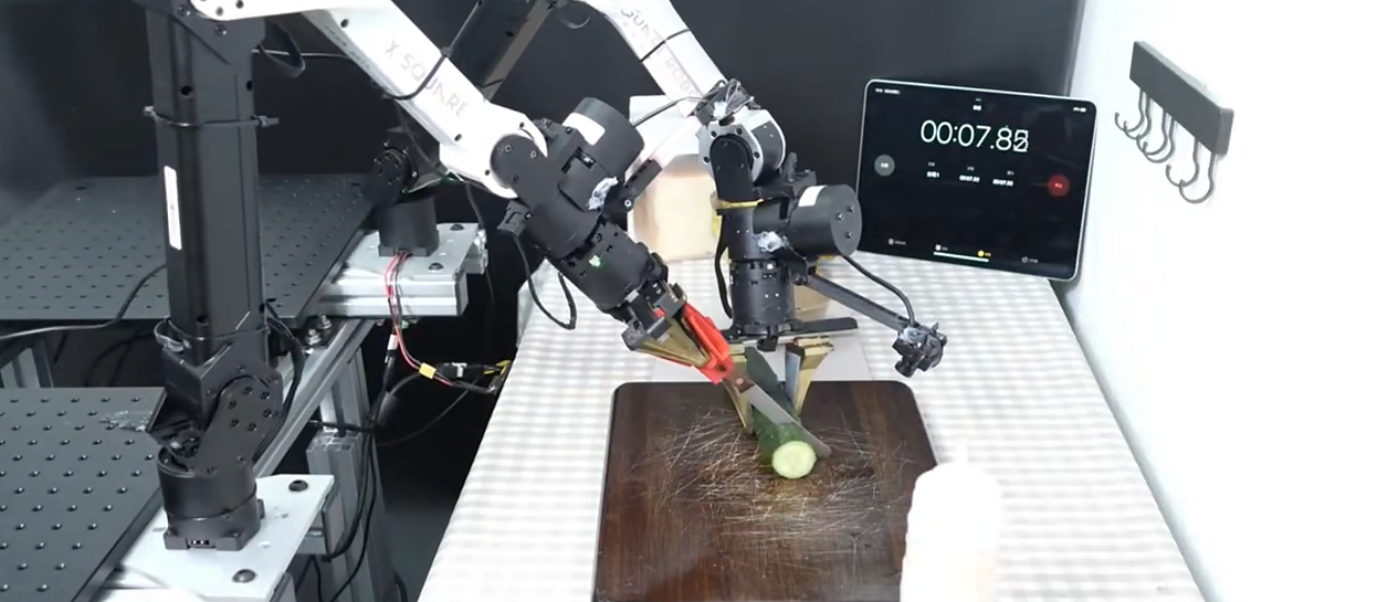 ▲基于自研端到端通用具身智能大模型,机器人正在完成多项多形态柔性物体操作任务