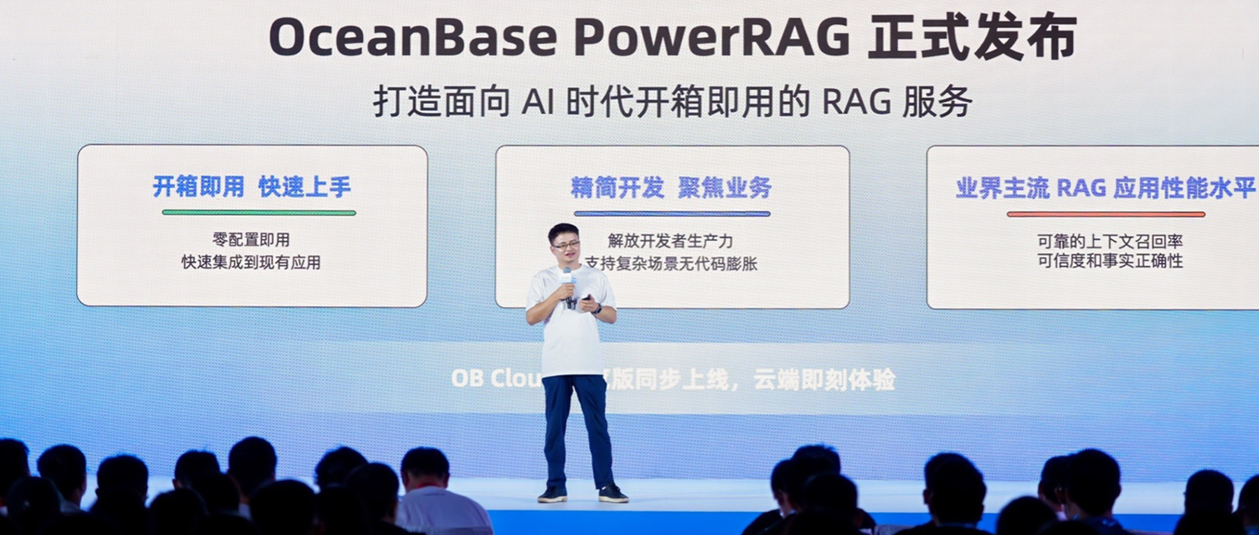 在此背景下,国产数据库的主力玩家OceanBase,已经在数据库转型之路上率先突围:宣布全面拥抱AI,打造“Data×AI”核心能力、启动人才和组织体系升级,并围绕一体化数据底座为核心发布首款面向AI的应用产品PowerRAG。