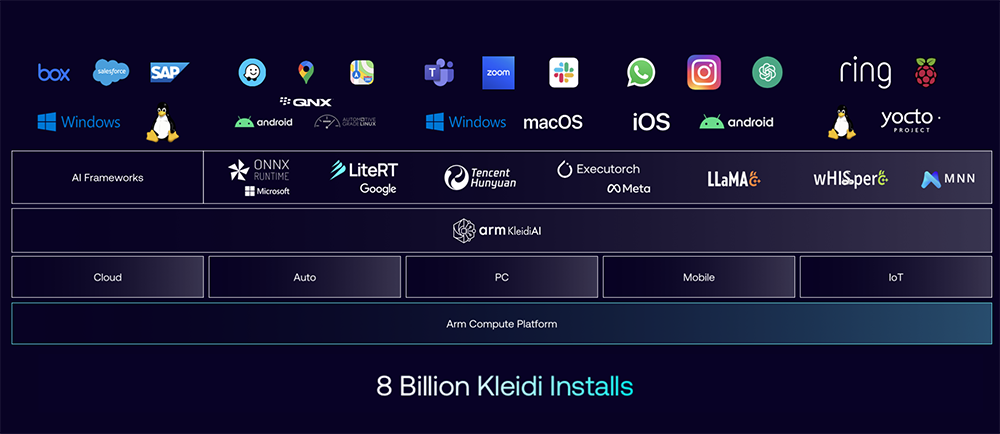 迄今为止,Kleidi已在搭载Arm架构的设备上累计超过80亿次安装,且仍在持续增长中。