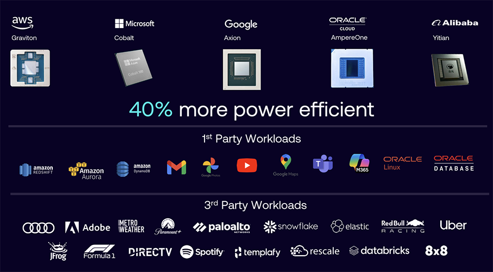 这股动力,来自业界对Arm高效节能计算能力的强烈需求。相比其他平台,头部云服务提供商所采用的Arm架构芯片可实现高达40%的能效提升。