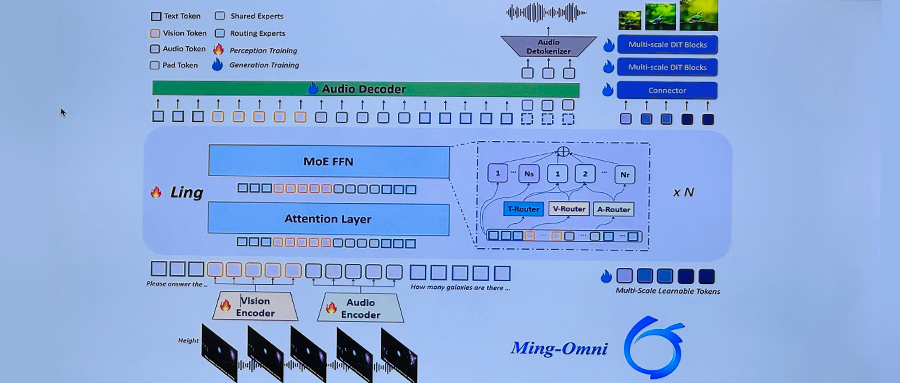 智东西与蚂蚁集团基础智能负责人西亭等相关负责人进行了面对面对话。西亭告诉智东西,新开源的Ming-lite-omni模型有几个值得关注的创新点:一是真正把生成和理解模型放到一个模型;二是真正意义上的全模态输入和输出,都支持音视频、图文多种形态;三是真正是以MoE为架构的模型,中间没有串其他东西,交互性较强。