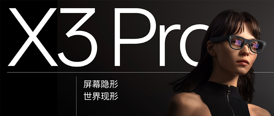 首先来看旗舰产品雷鸟X3 Pro,其为雷鸟创新发布的第三代彩色真AR眼镜,搭载了全球最小可量产全彩Micro-LED光引擎,并与应用材料公司(Applied Materials)联合研发了纳米光刻刻蚀RayNeo光波导,实现了43英寸全彩3D空中透明屏显示效果。