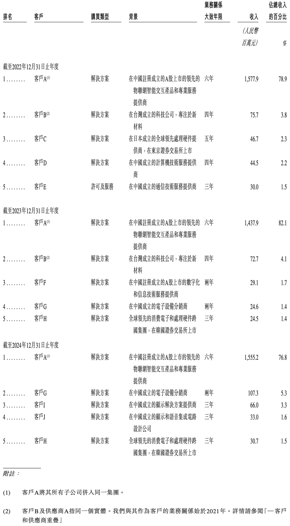 客户A连续多年是奕斯伟计算最大客户,是一家A股上市的物联网智能交互产品和专业服务提供商。