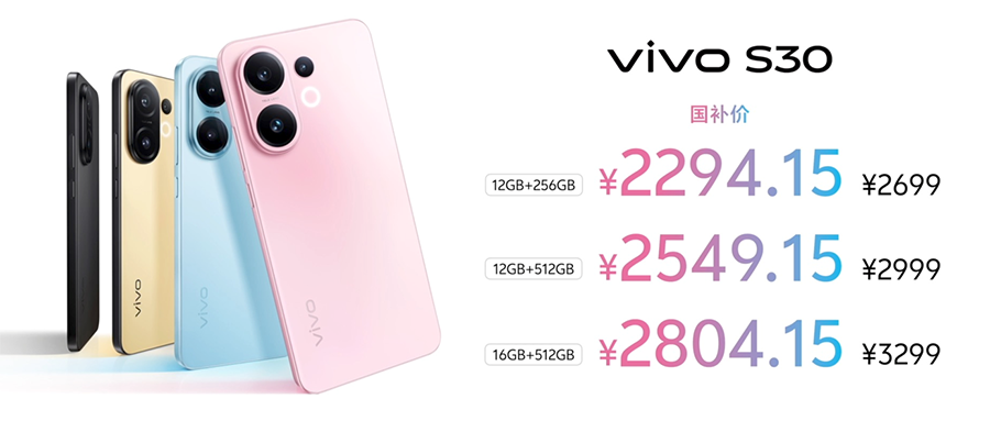 智东西5月30日消息,昨晚,vivo正式发布了vivo S30系列新机以及vivo Pad5平板,vivo S30系列的突出特点是外观设计上的创新,其主打年轻多元,采用了撞色设计,影像拍照方面重点升级了“氛围感”审美和live需求。