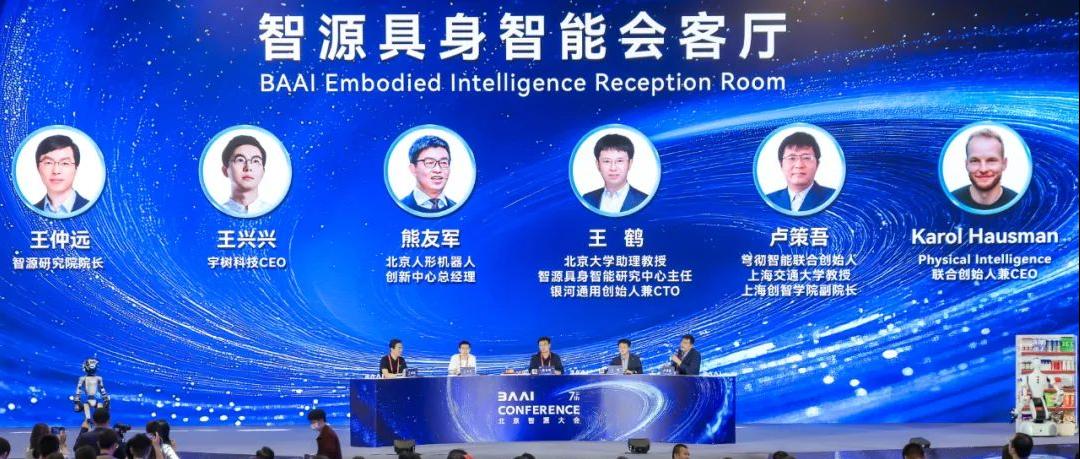 在大会的具身智能主题圆桌环节,宇树科技CEO,北京人形机器人创新中心总经理熊友军,北京大学助理教授、智源具身智能研究中心主任、银河通用创始人兼CTO王鹤,穹彻智能联合创始人、上海交通大学教授、上海创智学院副院长卢策吾以及Physical Intelligence联合创始人兼 CEOKarol Housman,针对具身智能技术发展、产业落地等话题各抒己见。