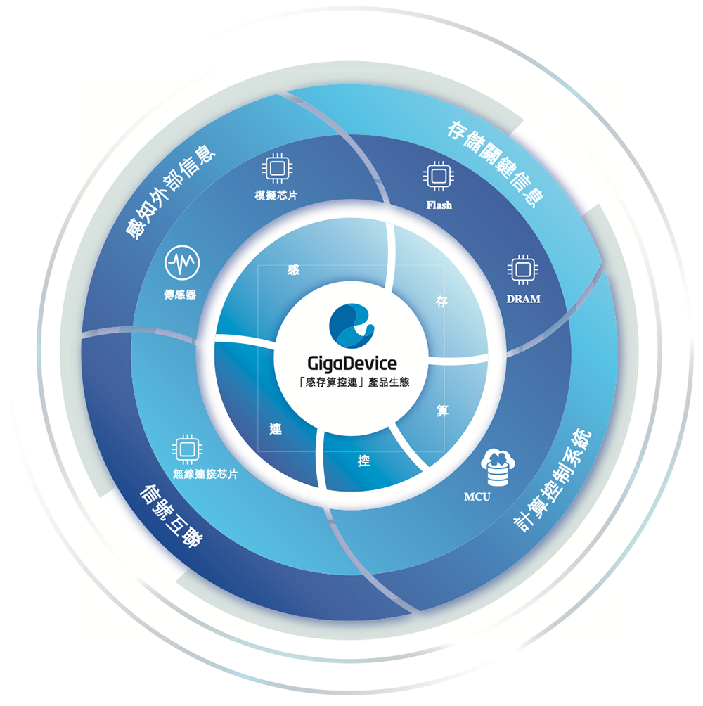 基于四大板块核心产品,兆易创新为消费电子、汽车、工业、PC及服务器、物联网、网络通讯等领域提供最佳的「感存算控连」生态协同解决方案。